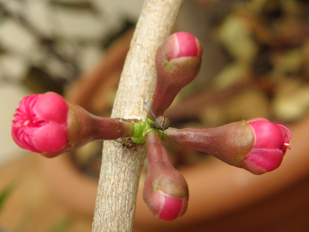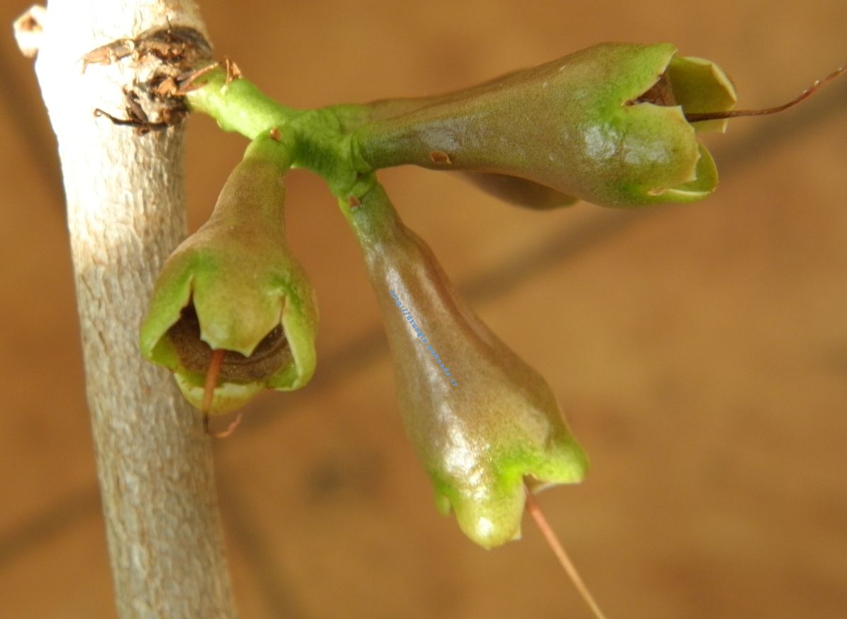 Zde malé plůdky, které se z květů vytvořily. Bohužel jsem následně rostlinu přesušil a v takových případech plůdky opadávají jako první. Tak snad se dočkám plodů později.
